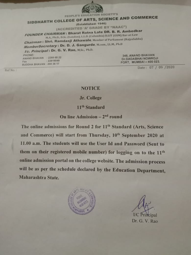 11th Admission 2nd round September 7, 2020July 12, 2023 admin https://siddharthasc.edu.in/wp-content/uploads/2020/09/2nd-round-of-11th-Admission.jpg